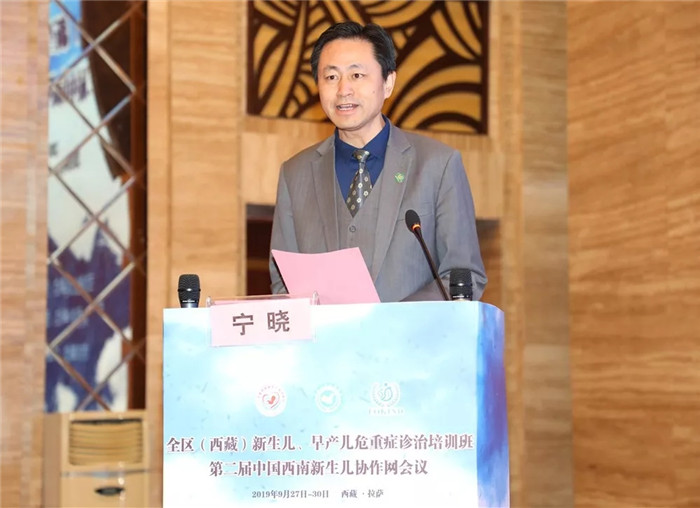 西藏阜康醫(yī)療股份有限公司總裁、西藏阜康醫(yī)院院長寧曉代表承辦方對(duì)中華醫(yī)學(xué)會(huì)兒科分會(huì)新生兒學(xué)組、中國西南新生兒協(xié)作網(wǎng)、重慶醫(yī)科大學(xué)附屬兒童醫(yī)院新生兒中心和西藏醫(yī)學(xué)會(huì)兒科專委會(huì)的信任和支持表示謝意,并預(yù)祝會(huì)議取得圓滿成功;