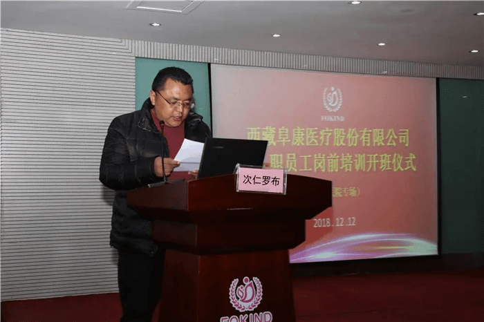 西藏玉拓醫(yī)療健康養(yǎng)老產(chǎn)業(yè)有限責(zé)任公司總經(jīng)理次仁羅布為本次培訓(xùn)活動致辭:"西藏阜康康復(fù)醫(yī)院是一家康復(fù)專科醫(yī)院,也是‘玉拓醫(yī)療’和‘阜康醫(yī)療’聯(lián)合創(chuàng)辦的醫(yī)院,我相信我們兩家公司一定會精誠合作,將康復(fù)醫(yī)院發(fā)展成為技術(shù)一流、服務(wù)一流的現(xiàn)代化醫(yī)院!”