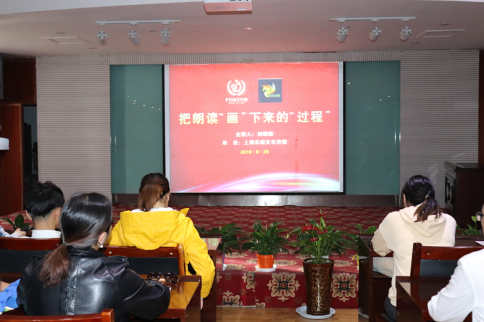 19:00,主持人宣布培訓(xùn)開始。劉碰碰老師以一句"今天天氣真好?”開始了培訓(xùn),在劉老師的提議下,以這一句話在不同情境下以不同的方式表達(dá)不同含義,大家紛紛踴躍嘗試,或是高興、或是憂傷、或是搞笑,現(xiàn)場氣氛變得輕松、愉悅,為了貼近大家的生活,劉老師特意選取了倉央嘉措的詩作為朗讀的范本,把朗讀"畫”下來,用"畫畫”的方式,將作者寫在紙上的文字,用聲音這支筆讓它立體起來,形成一個又一個豐富的"聲音的畫面”,讓聽者感同身受。