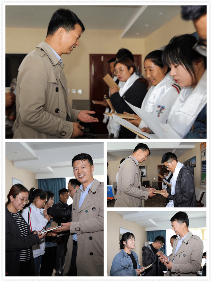 隨后,王斌董事長(zhǎng)向7名規(guī)培生門(mén)頒發(fā)了《阜康員工守則》,并敬獻(xiàn)了潔白的哈達(dá),佩戴了阜康院徽,他臨別叮囑:"謹(jǐn)記阜康囑托,謹(jǐn)守阜康準(zhǔn)則,不辱阜康之名,為阜康爭(zhēng)榮!希望你們能夠腳踏實(shí)地在華西醫(yī)院和成都市第三人民醫(yī)院帶教老師的指導(dǎo)下完成規(guī)培計(jì)劃,并在三年內(nèi)考過(guò)執(zhí)業(yè)醫(yī)師資格證和規(guī)范化培訓(xùn)資格證,按時(shí)歸來(lái)服務(wù)阜康、報(bào)效西藏!”