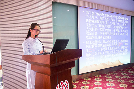 在隨后的醫(yī)保知識(shí)培訓(xùn)中,醫(yī)保辦張燕平同志為新入職的臨床工作人員仔細(xì)講解了包括基本醫(yī)療保險(xiǎn)、門(mén)診特殊病、大額醫(yī)療費(fèi)商業(yè)補(bǔ)充保險(xiǎn)、拉薩市醫(yī)療救助"一站式”即時(shí)結(jié)算服務(wù)、新農(nóng)合等有關(guān)醫(yī)保方面的專業(yè)知識(shí),以方便臨床醫(yī)務(wù)工作者在以后的各項(xiàng)實(shí)際工作中能與醫(yī)保進(jìn)行很好的銜接,從而提高醫(yī)院醫(yī)?;鸢踩褂寐剩糁漆t(yī)療費(fèi)用的不合理增長(zhǎng),維護(hù)參保人員的合法權(quán)益,促進(jìn)各項(xiàng)醫(yī)療保險(xiǎn)制度更加穩(wěn)妥、有序地發(fā)展。