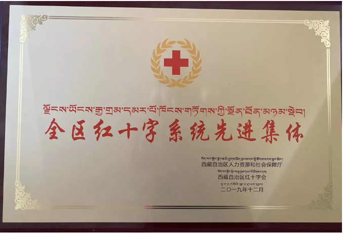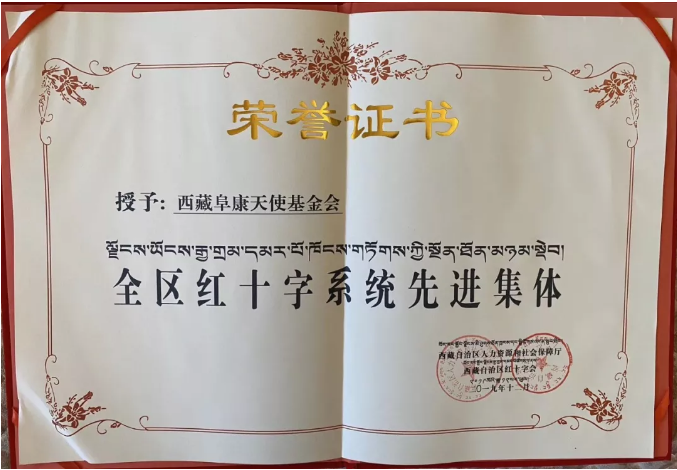 西藏阜康天使基金會榮獲"全區(qū)紅十字會系統(tǒng)先進集體”榮譽稱號