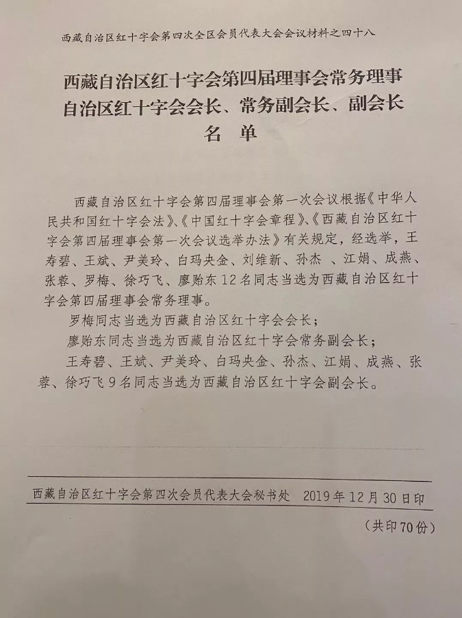 2019年12月30日上午10:30,西藏自治區(qū)紅十字會第四次全區(qū)全員代表大會在拉薩飯店舉行。