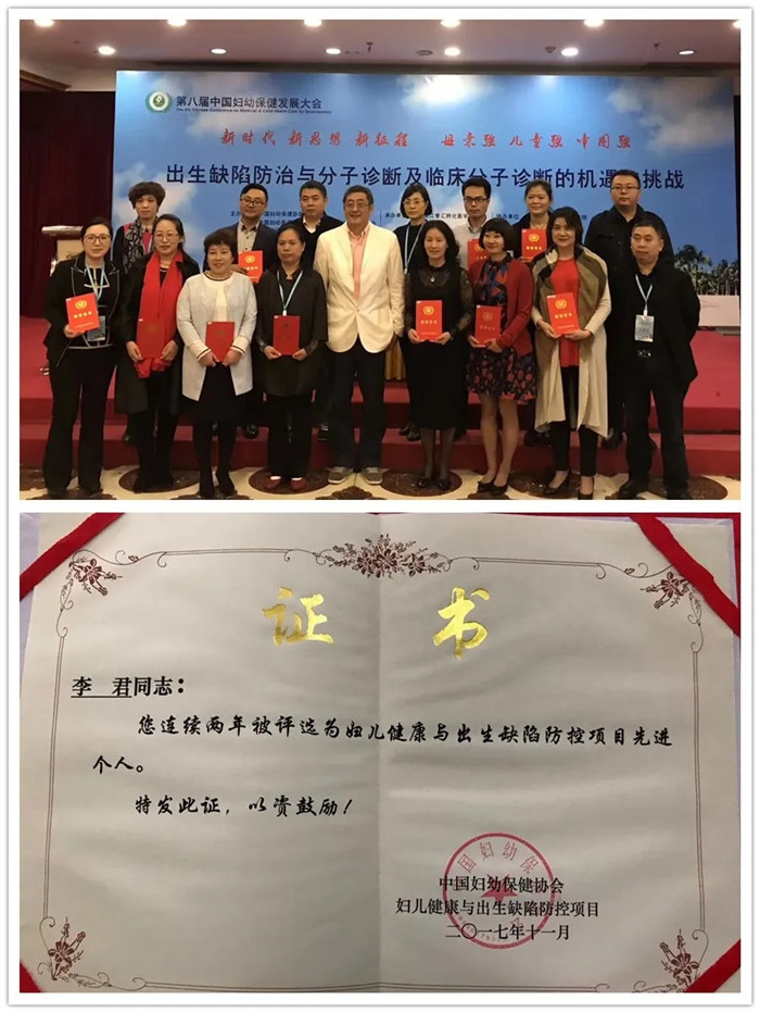 在院期間,李君主動(dòng)承擔(dān)了學(xué)術(shù)兼職的重?fù)?dān)。在2014年榮獲"西藏自治區(qū)衛(wèi)生行業(yè)婦女崗位建功先進(jìn)個(gè)人”稱號(hào),在2016年、2017年、2018年連續(xù)三年間被評(píng)為"婦兒健康與出生缺陷防控項(xiàng)目先進(jìn)個(gè)人”。