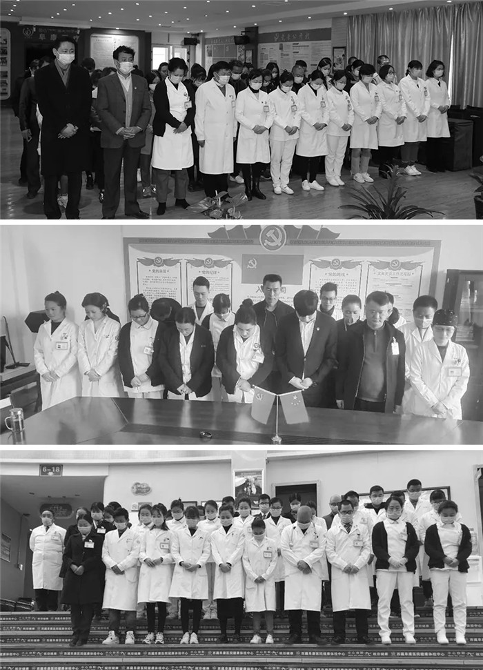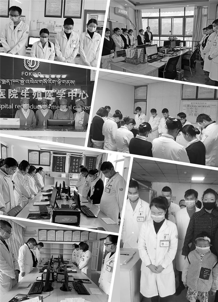 西藏阜康醫(yī)療全體黨員和醫(yī)務工作者及行政后勤人員默哀,追思抗疫犧牲的同胞!