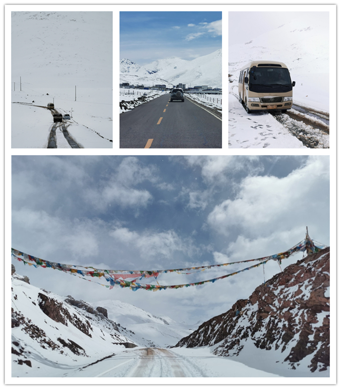 8點30分左右,義診隊伍到達當雄縣境內(nèi)時天氣驟變,漫天的飛雪瞬時將羌塘草原披上了一件銀色外衣,天地間茫茫一片,駕駛員為了保證行車安全,放慢了車速,謹慎駕駛。