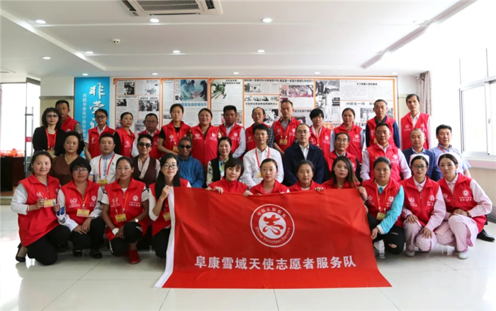 西藏阜康雪域天使志愿者服務(wù)隊成立于2017年,以"奉獻、友愛、互助、進步”為宗旨,在患者就診秩序維護、敬老助殘、醫(yī)療解答、保護環(huán)境、社區(qū)義診、健康講座、送醫(yī)送藥下鄉(xiāng)等領(lǐng)域開展了多種形式的志愿活動。