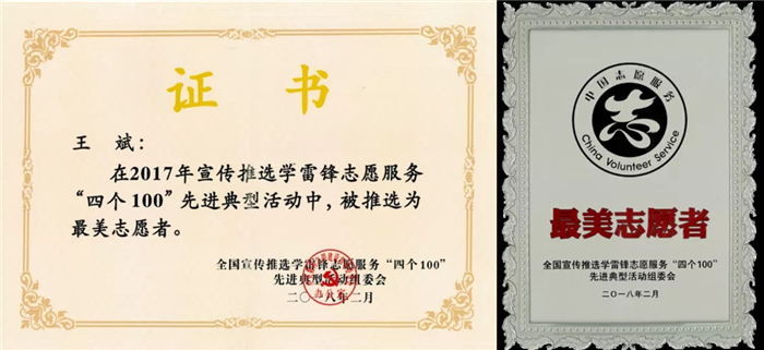 西藏阜康雪域天使志愿者服務(wù)隊隊長王斌,在2017年學(xué)雷鋒志愿服務(wù)"四個100”先進典型活動中,被推選為最美志愿者。