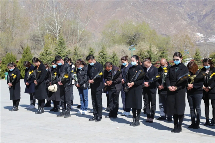 唱過國歌之后,全體人員手執(zhí)鮮花,俯首默哀,在內(nèi)心深切緬懷為西藏解放、為西藏繁榮富強作出奉獻和犧牲的英雄先烈。